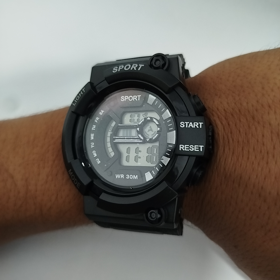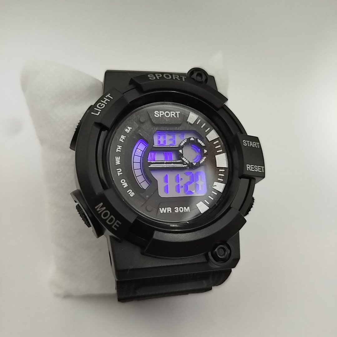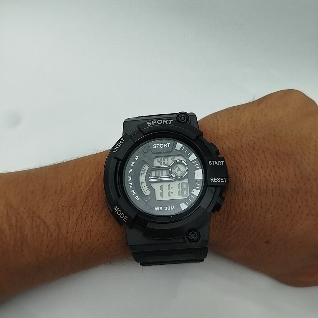 ساعت مچی اسپرت مردانه با سه ماه ضمانت ضد آب بند پیو ضد تعریق دارای تقویم و کرنومتر و نشانگر ایام هفته . چراغ دید در شب قیمت اقتصادی {تعداد محدود}