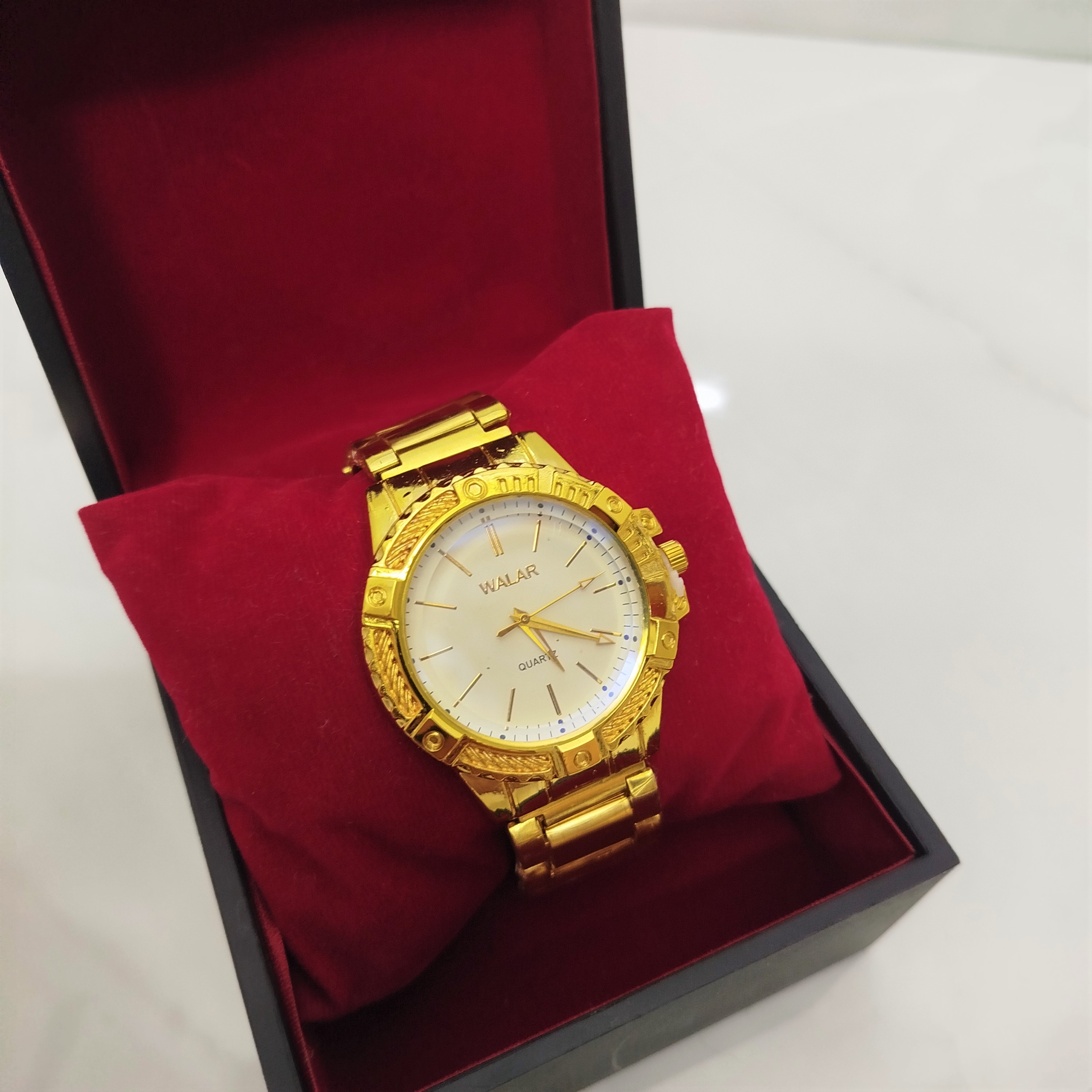 ساعت مچی والار – طلایی با صفحه سفید و قاب طرحدار