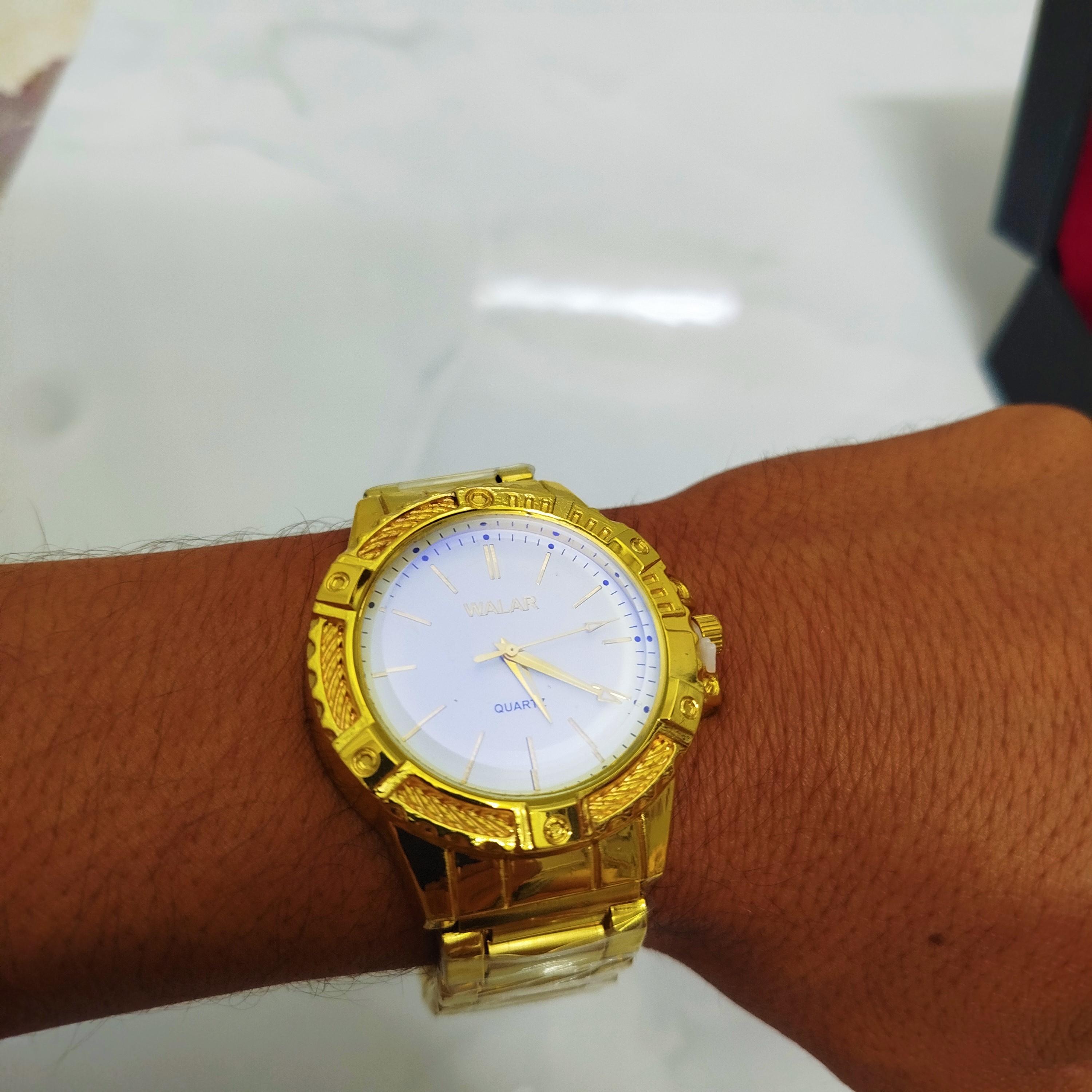 ساعت والار با ترکیب طلایی و صفحه سفید مینیمال، انتخابیست برای کسانی که به ظرافت در طراحی و جلوهای متمایز اهمیت میدهند. قاب طرحدار این مدل، آن را از ساعتهای ساده جدا میکند و جلوهای هنری به آن میبخشد.