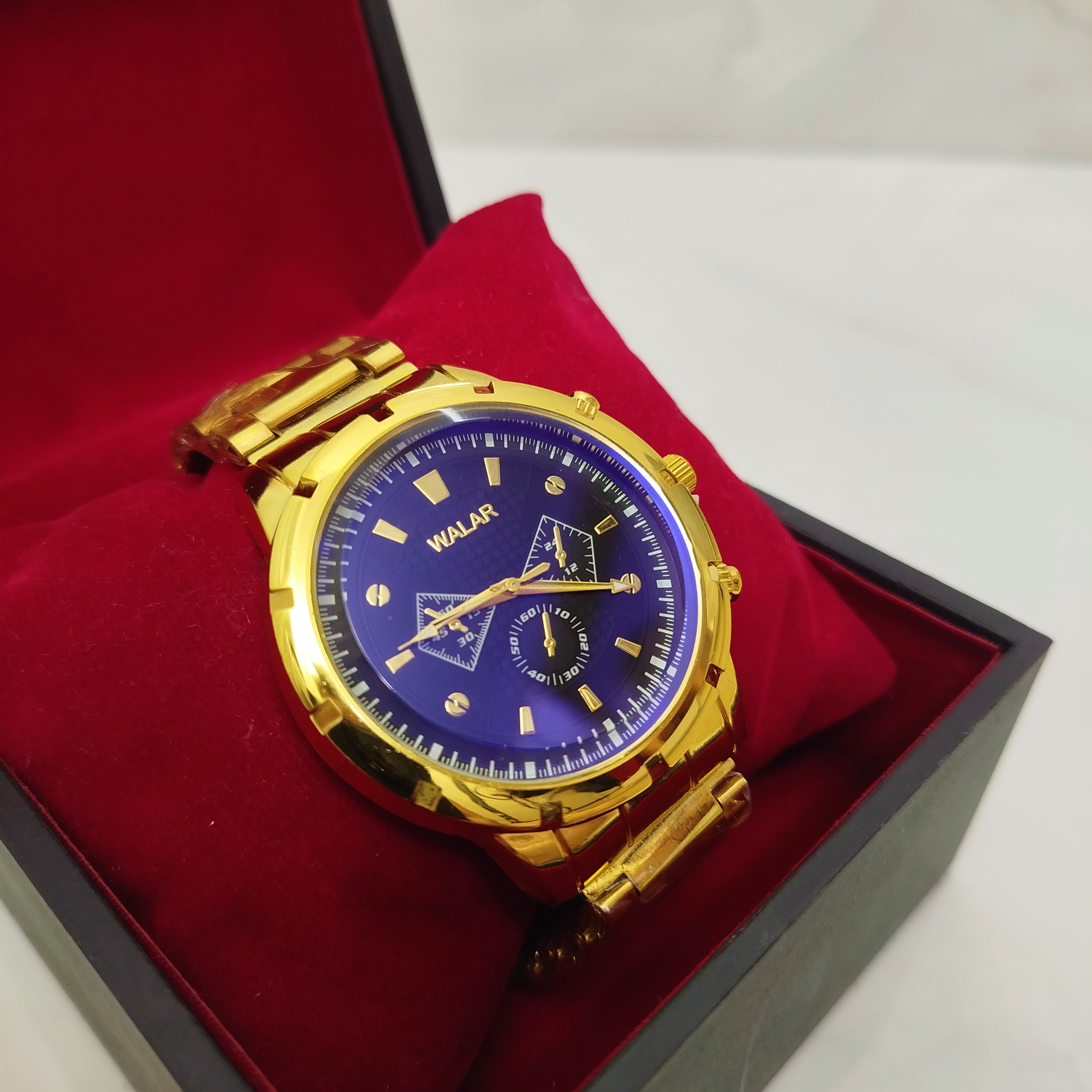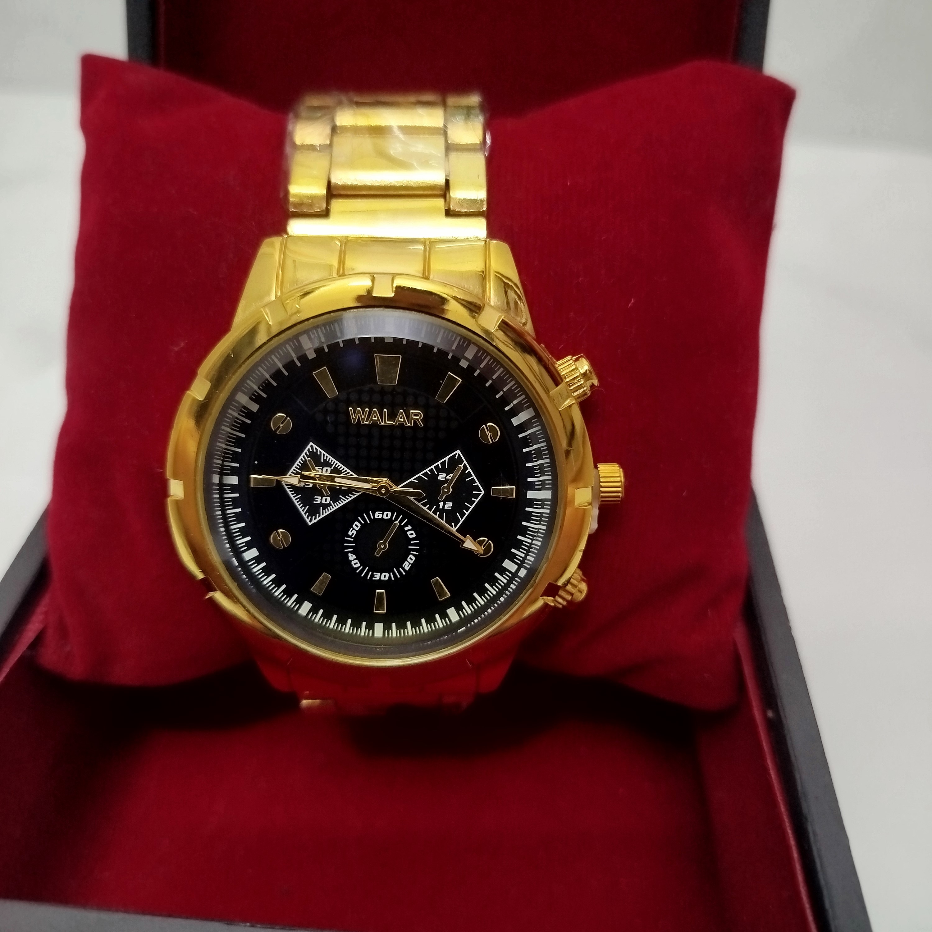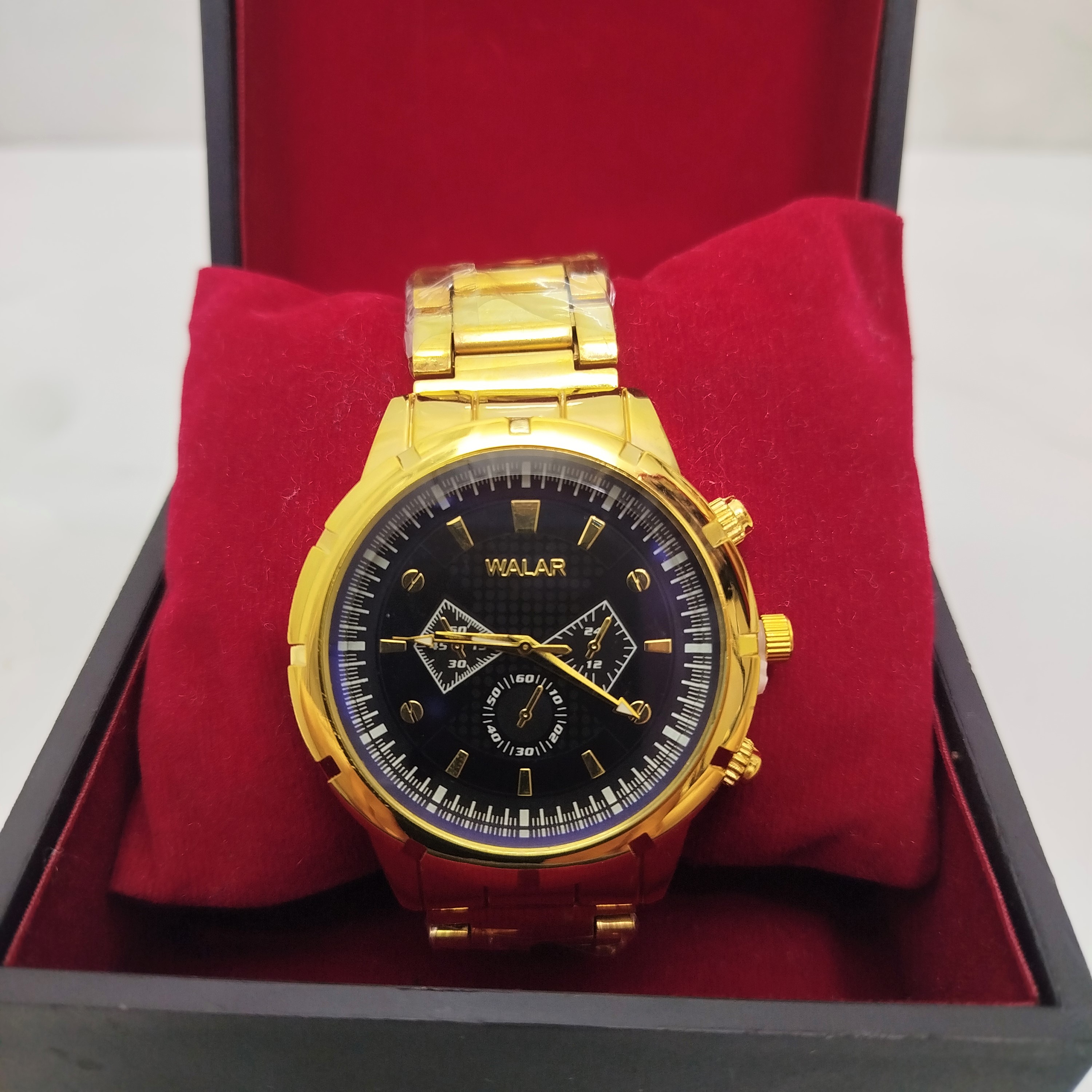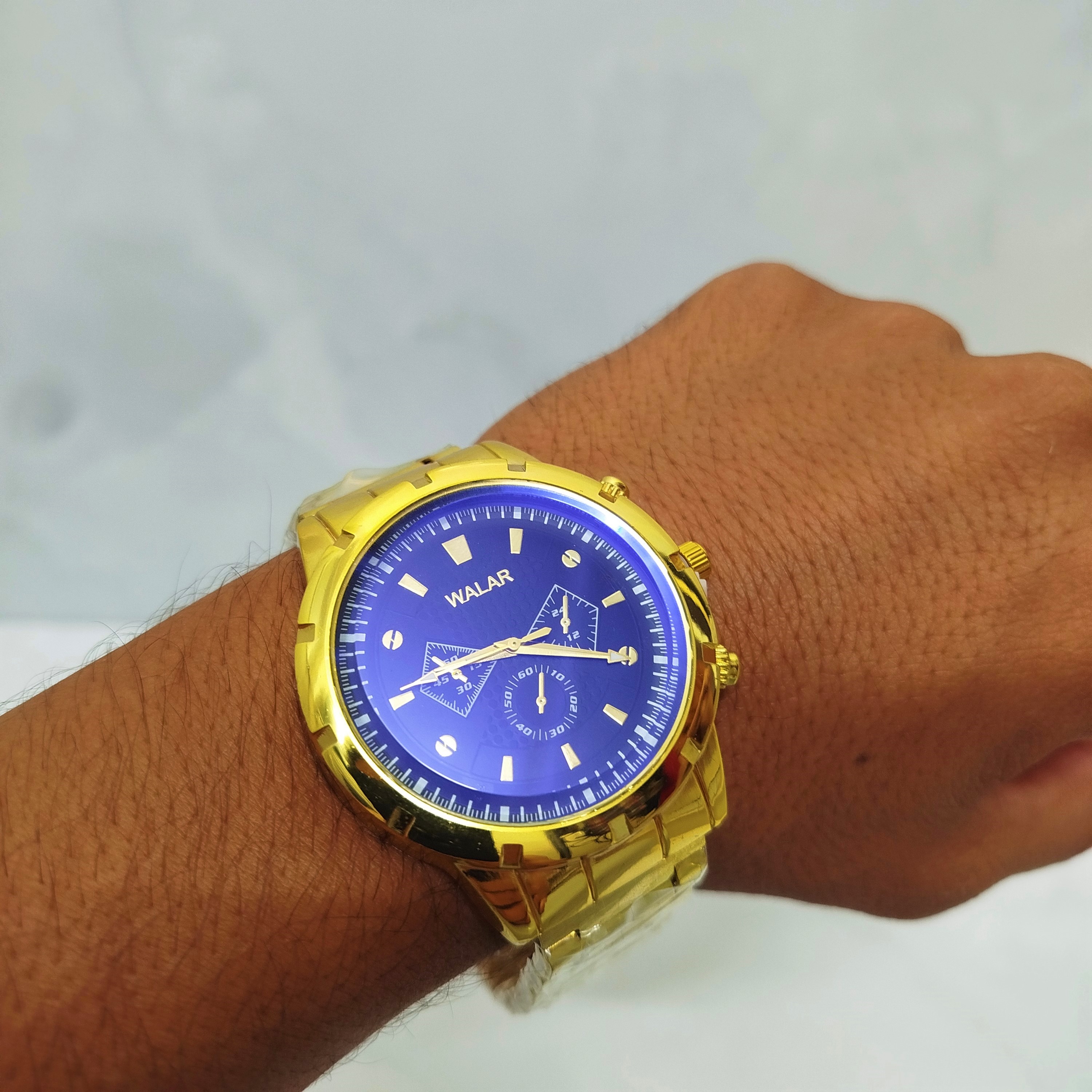 ساعت والار با قاب طلایی و صفحه مشکی، انتخابیست برای کسانی که به استایل مینیمال اما تأثیرگذار علاقه دارند. طراحی ساده و شیک این مدل، آن را به گزینهای مناسب برای استفاده روزمره و موقعیتهای رسمی تبدیل کرده است.