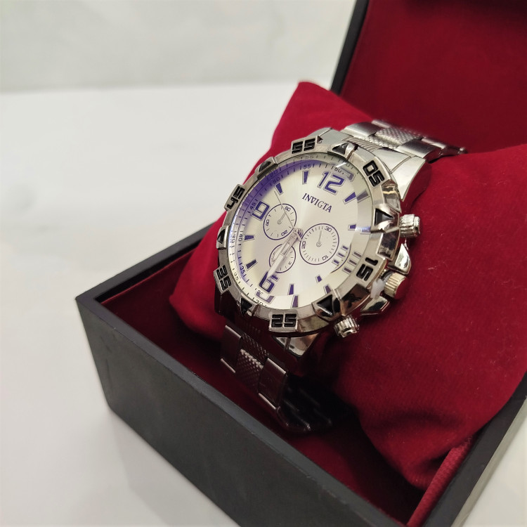 ساعت اینویگتا با صفحه سفید و بند استیل خالدار، انتخابیست برای کسانی که به جزئیات اهمیت میدهند و به دنبال ساعتی متفاوت هستند.