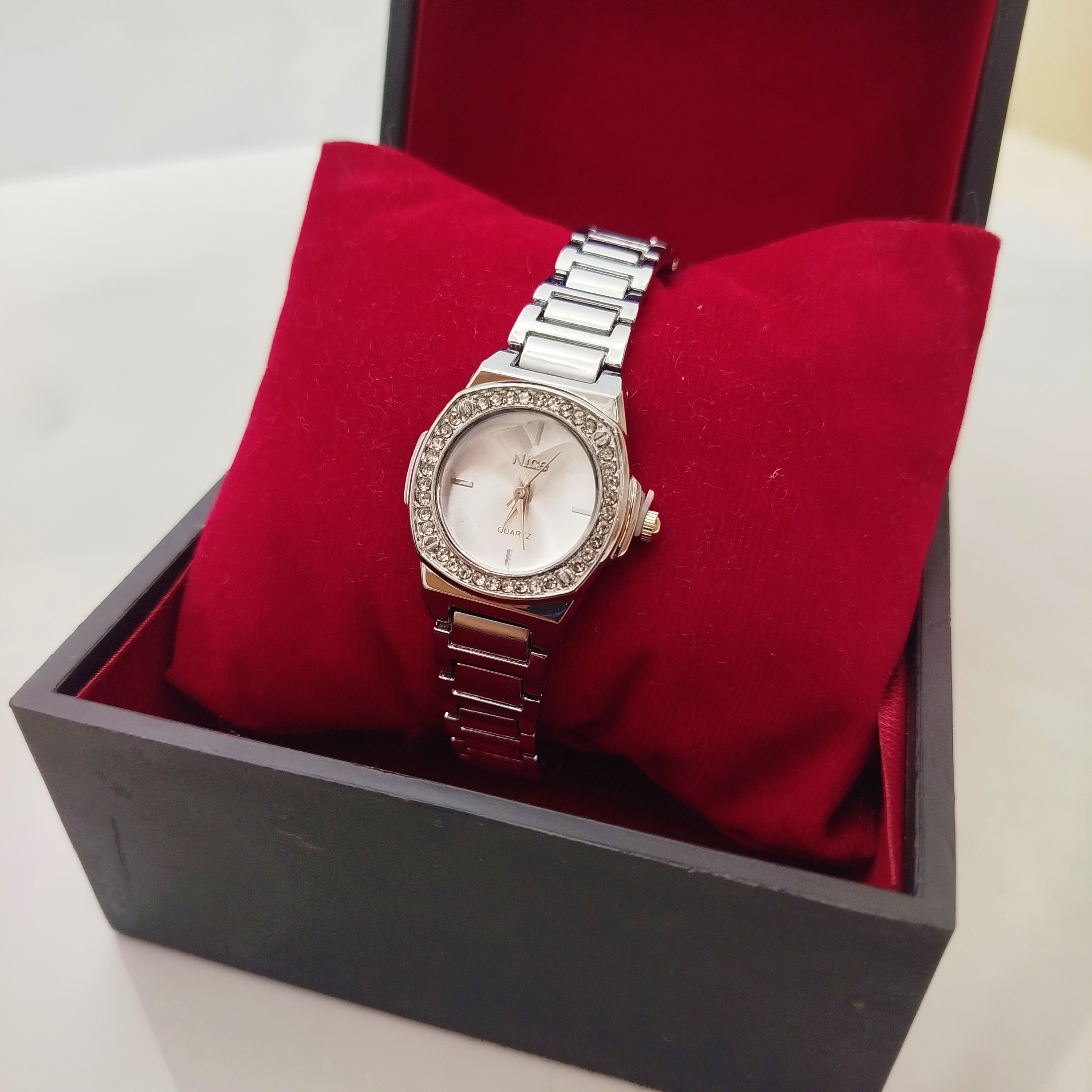 اگر بهدنبال ساعتی هستید که هم ظاهری شیک داشته باشد و هم قیمت مناسبی، مدل نگیندار نایس انتخابی هوشمندانه است. طراحی استیل براق با نگینهای ظریف، این ساعت را به اکسسوریی تبدیل کرده که در هر موقعیتی میدرخشد—از قرارهای دوستانه تا مهمانیهای رسمی.