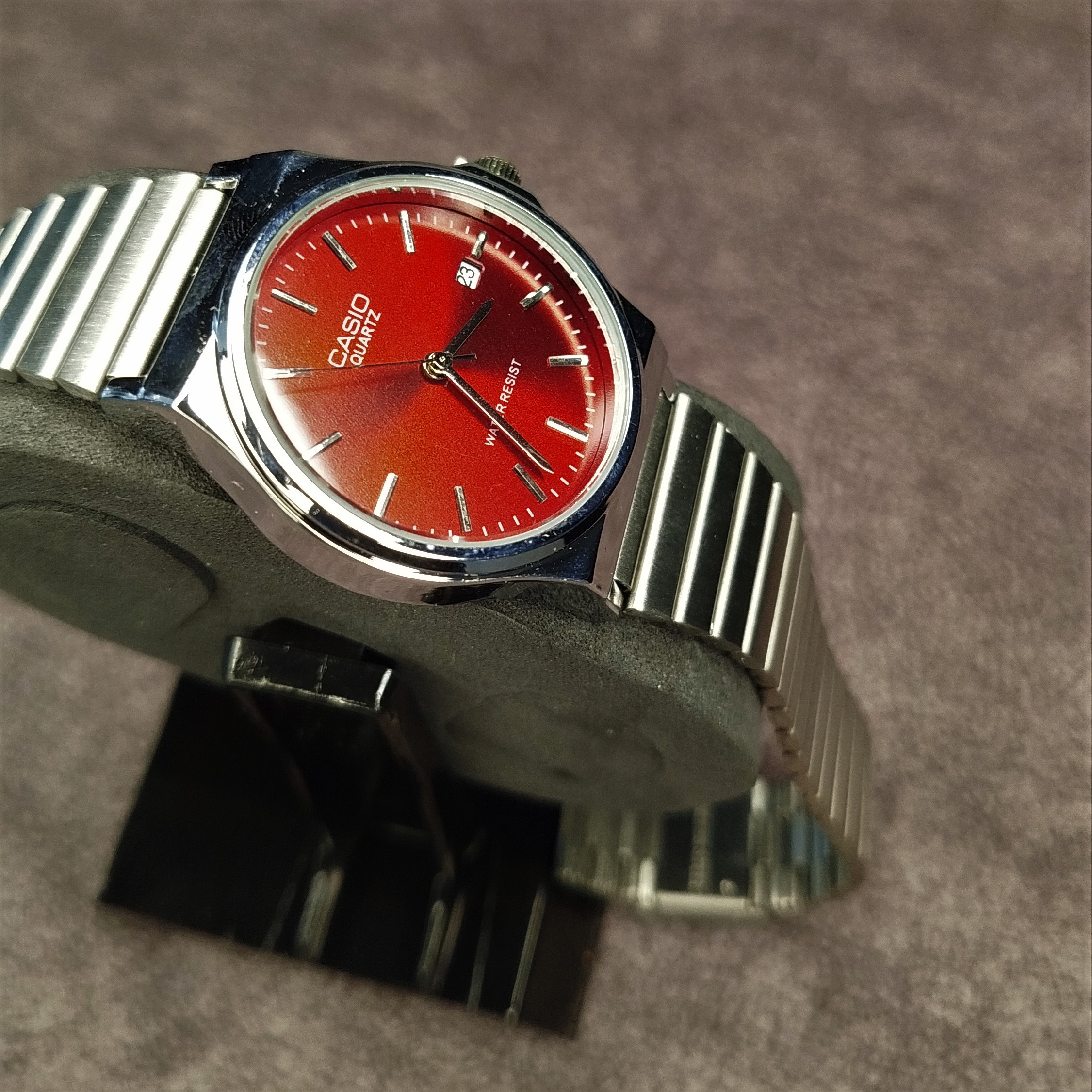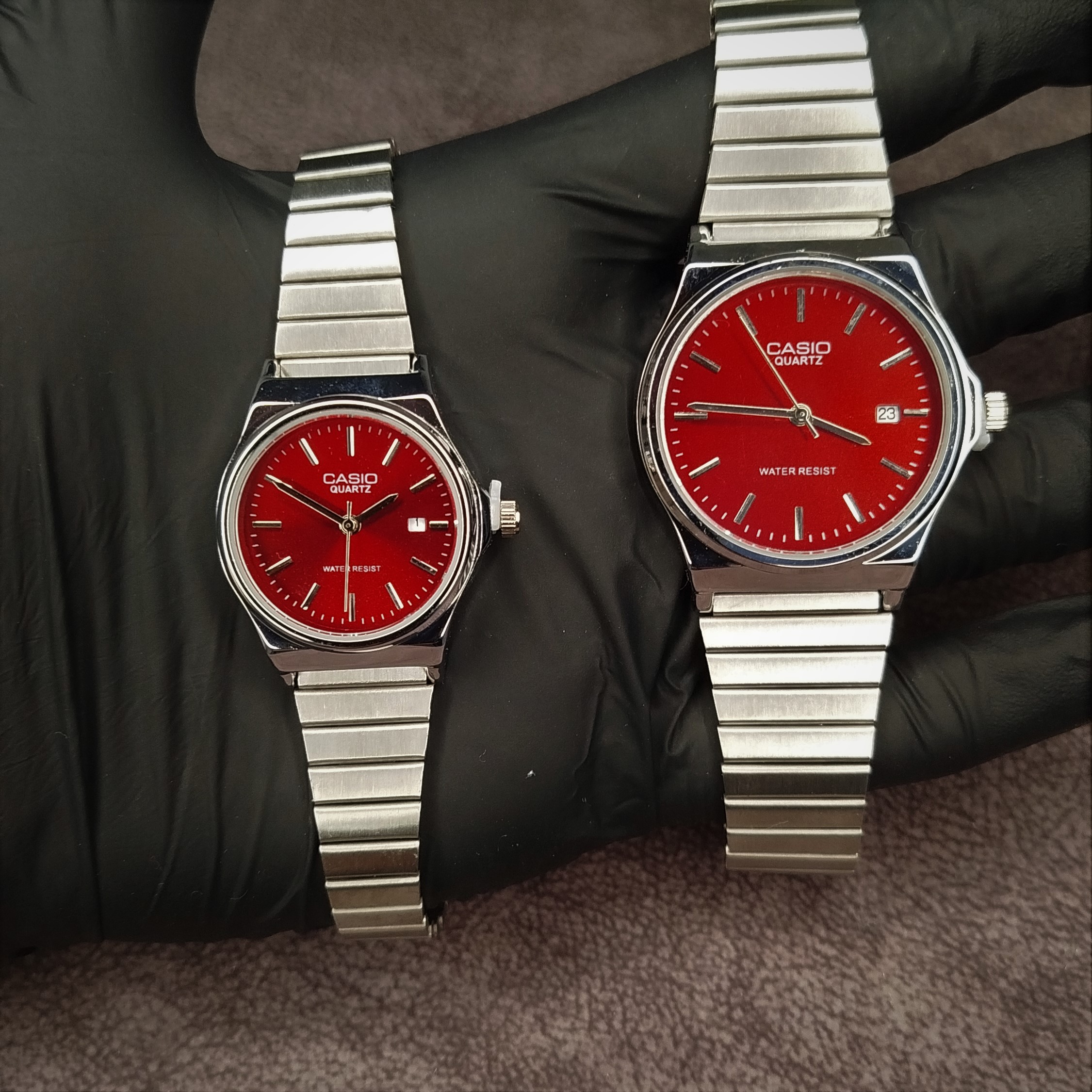 دستهبندی: ساعت ست مرد و زنجنس: استیلرنگ: استیلرنگ صفحه: قرمزمناسب برای: آقایان و خانم هامورد استفاده : رسمی و روز مرهنوع قفل : آسانسوریویژگی ها : سبک و ضد حساسیت . روزشمار فعال. بند آسانسوری قابل تنظیم توسط شخص . ضد آب .کیفیت عالینمایش بیشتر
