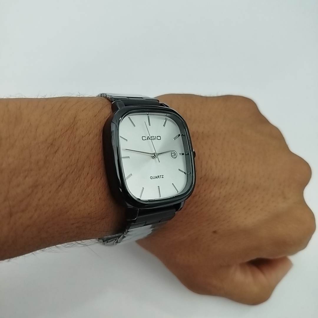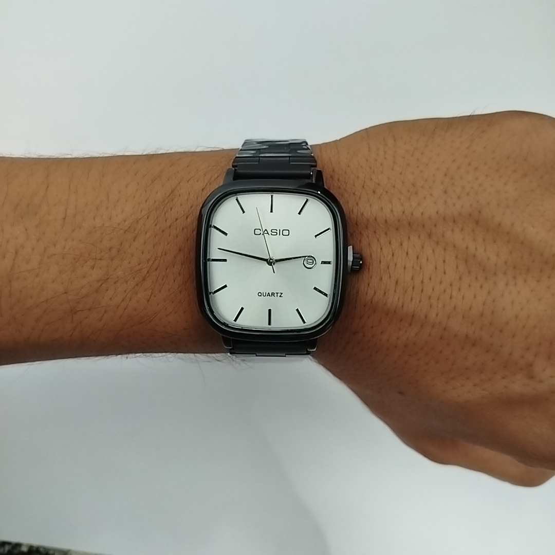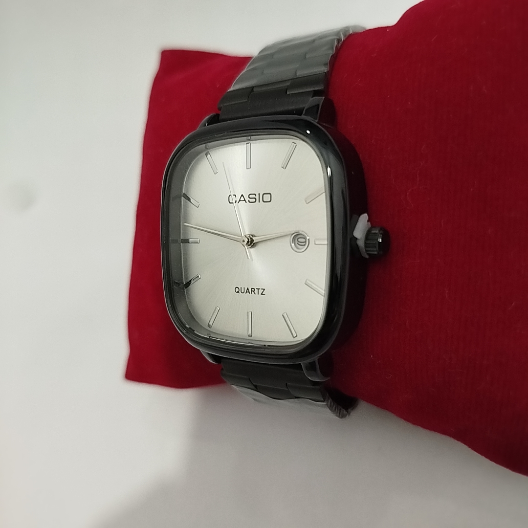 کاسیو اولدمانی مشکی بند آسانسوری قابل تنظیم بدون ابزار سبک و ضد آب تک موتور تقویم دار مناسب برای استایل روز مره و رسمی